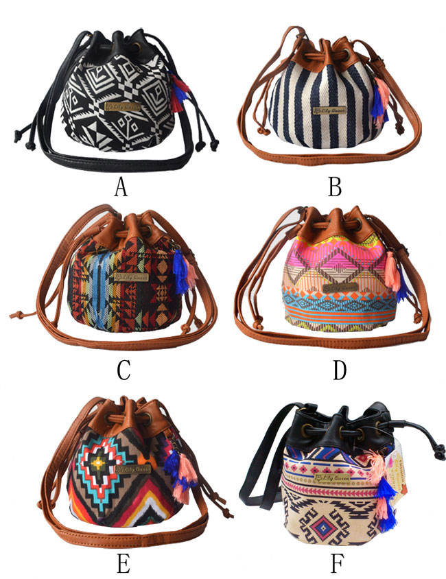- Frauen reizende bunte Mini Volks Streifen Geometrie Kordelzug Eimer Tasche Umhängetasche