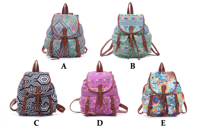 - Frische Hochschule Blumen geometrische Muster-Segeltuch-Schule-Spielraum-Rucksack