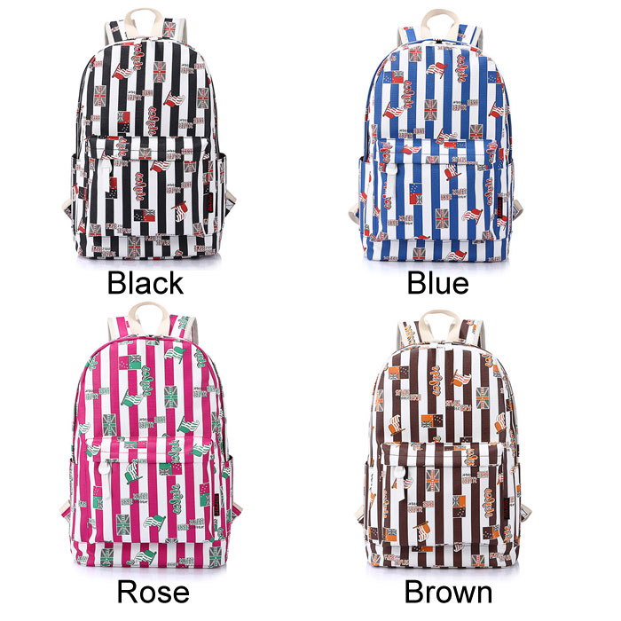 Fashion Double Vertikale Streifen Schwarz Nylon Schulrucksack