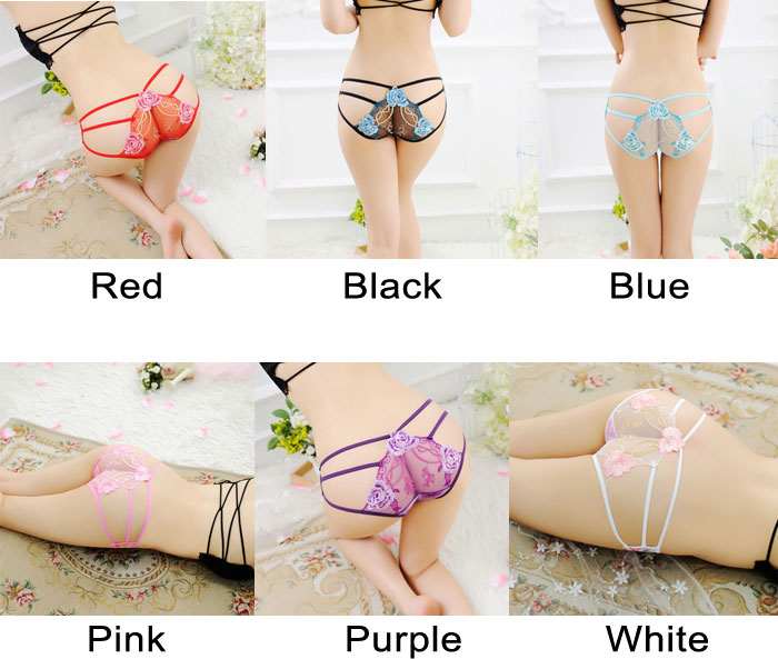 Sexy Hohl Blumen Stickerei Schrittoffen Höschen Freche Slips T-Back Damenunterwäsche Tanga-Dessous Erotische Unterhosen