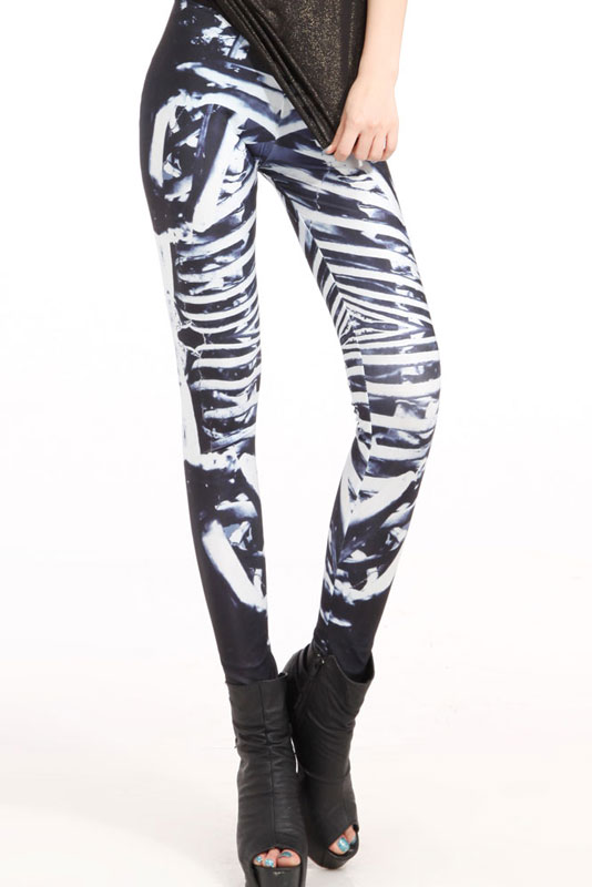 Fashion stretch tight elastic black and white skeleton Printed Leggings tight feet, very stylish, very special.