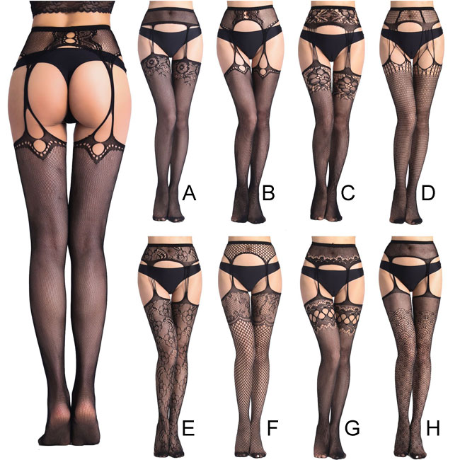 Sexy Fishnet Jacquard Lace Garter Belt Mesh Perspective Thigh High Net Stockings For Women Over The Knee Socks Lingerie Pantyhose Stocking